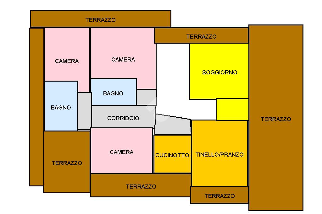 Immagina: sei al terzo ed ultimo piano con ascensore, in una palazzina di solo 5 appartamenti, nessun vicino sopra di te, solo silenzio, privacy e un terrazzo che gira intorno a casa tua a 360°